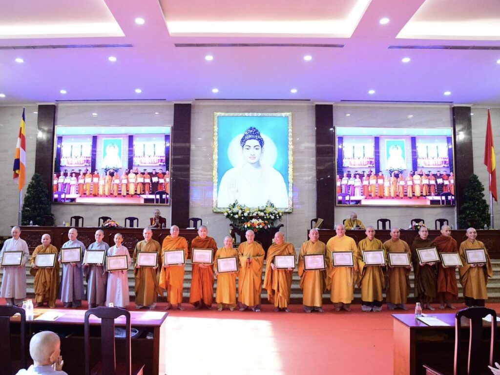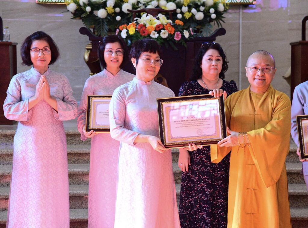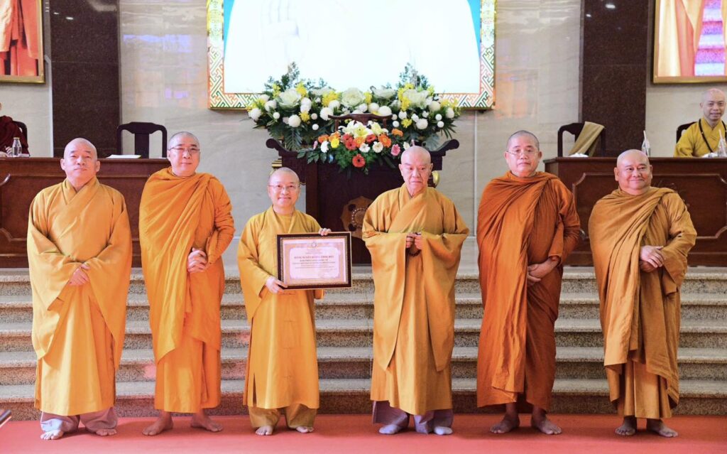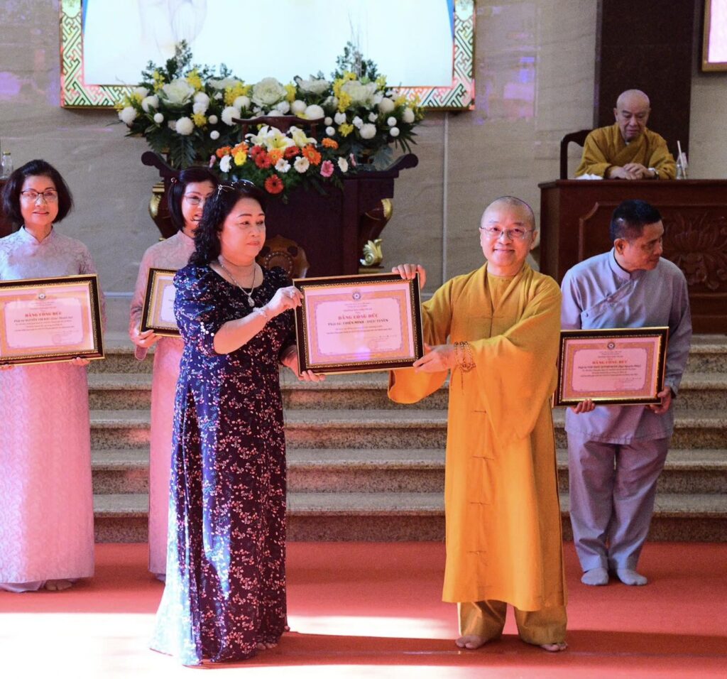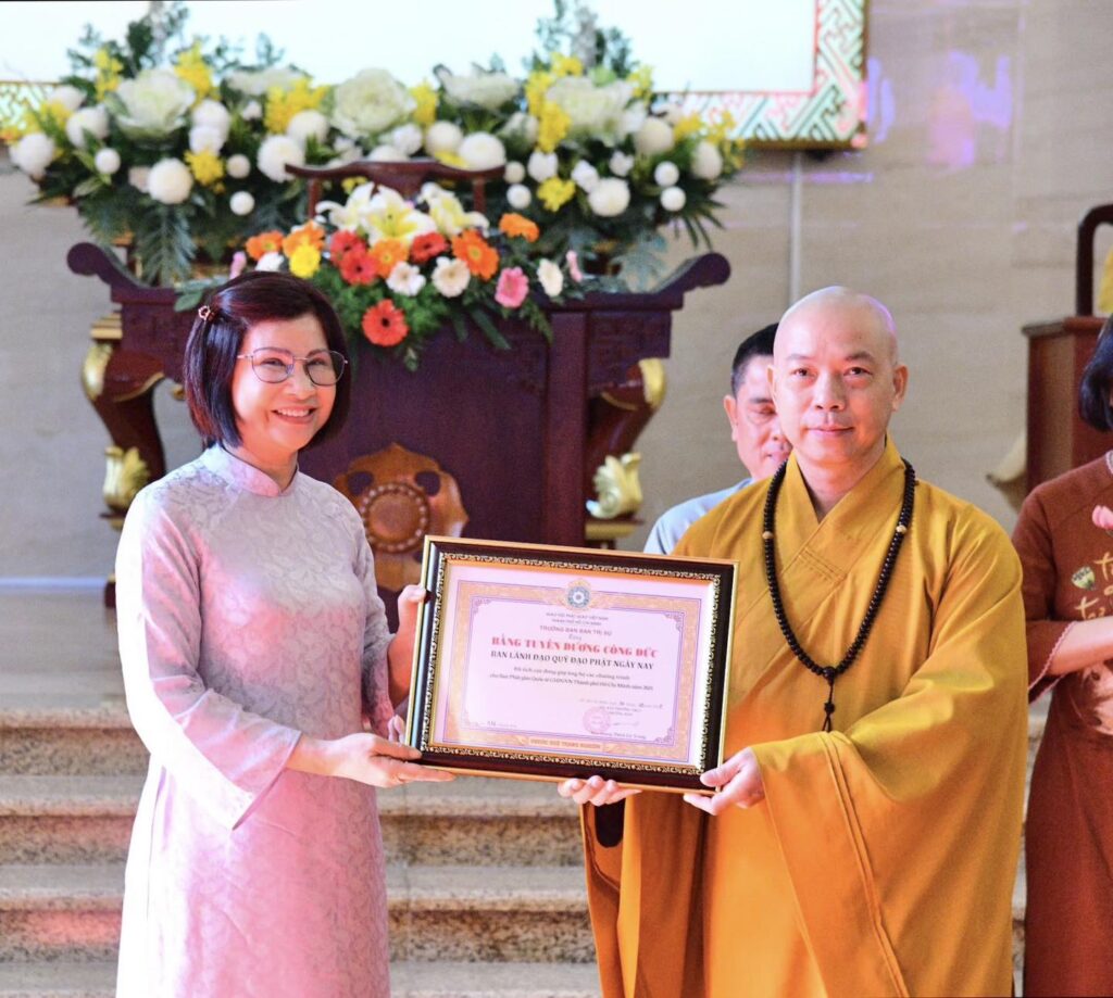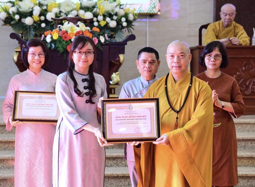 Dịp này, Thường trực Ban Trị sự Phật giáo Thành phố đã trao tặng bằng tuyên dương công đức và bằng công đức cho các tập thể và cá nhân của Ban Phật giáo Quốc tế với những đóng góp cụ thể vào công tác Phật sự chung của Phật giáo thành phố năm 2025.