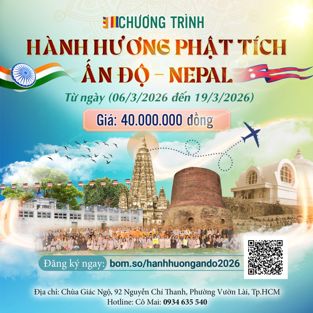 Chùa Giác Ngộ trân trọng thông báo chương trình Hành hương chiêm bái Phật tích Ấn Độ – Nepal trong 13 ngày, từ 06/3/2026 đến 19/3/2026