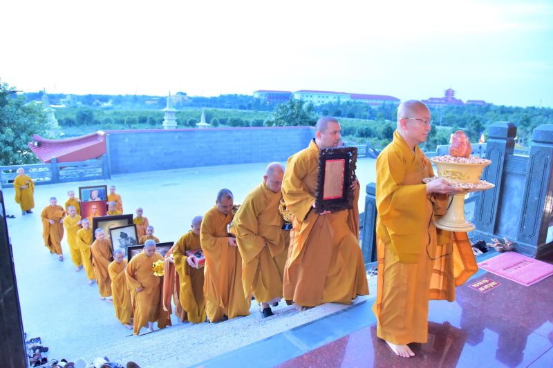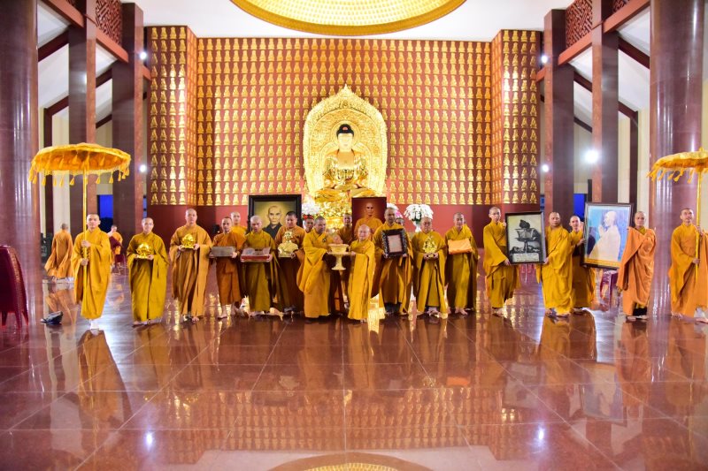 Tiếp đó, chư tôn thiền đức hiện diện đối trước tôn tượng Đức Bồ tát Thích Quảng Đức nhất tâm kính tưởng và tiến hành nghi thức cung thỉnh các di vật về Học viện Phật giáo Việt Nam TP.HCM.