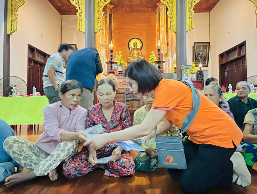 Tại buổi gặp gỡ, đoàn đã trực tiếp trao tặng 100 suất tịnh tài cho 100 hộ gia đình chịu ảnh hưởng nặng nề. Mỗi suất trị giá 500.000 đồng tiền mặt, tổng hỗ trợ là 50.000.000 đồng.
