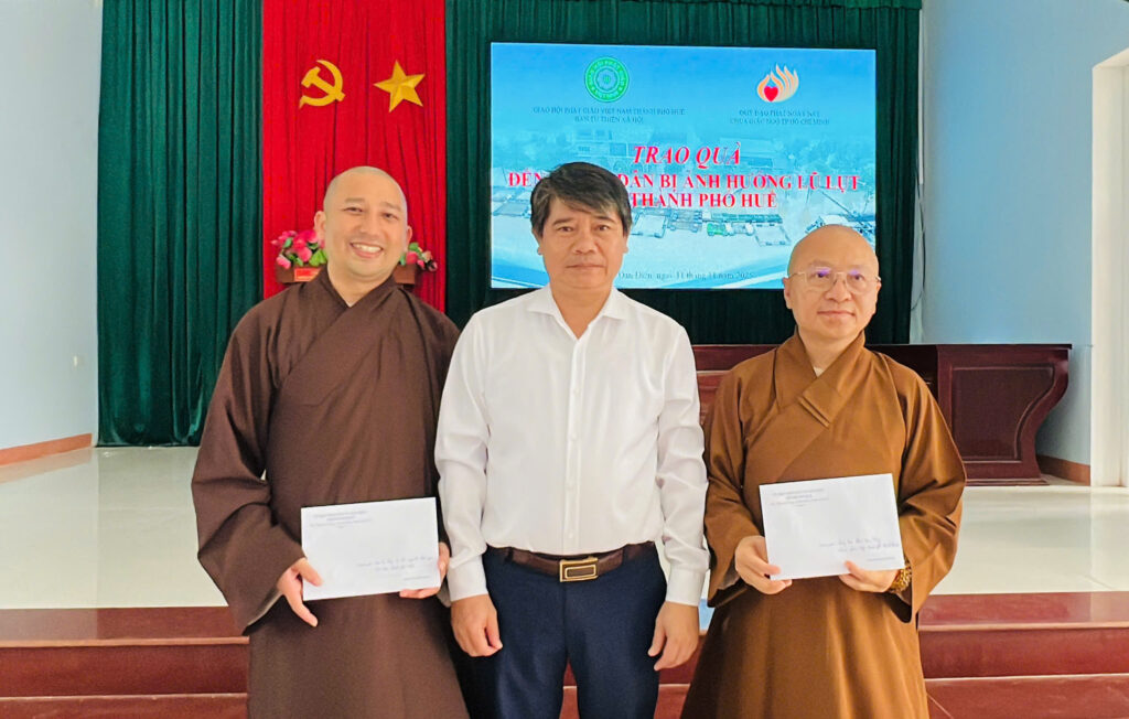 Tiếp nối chuyến công tác nhân đạo tại miền Trung, sáng nay, đoàn Quỹ Đạo Phật Ngày Nay (ĐPNN) trực thuộc Chùa Giác Ngộ (TP.HCM) đã di chuyển đến xã Đan Điền, TP. Huế – điểm dừng chân thứ hai trong chuỗi hoạt động hỗ trợ khẩn cấp đồng bào chịu ảnh hưởng nặng nề của đợt thiên tai, lũ lụt lịch sử.