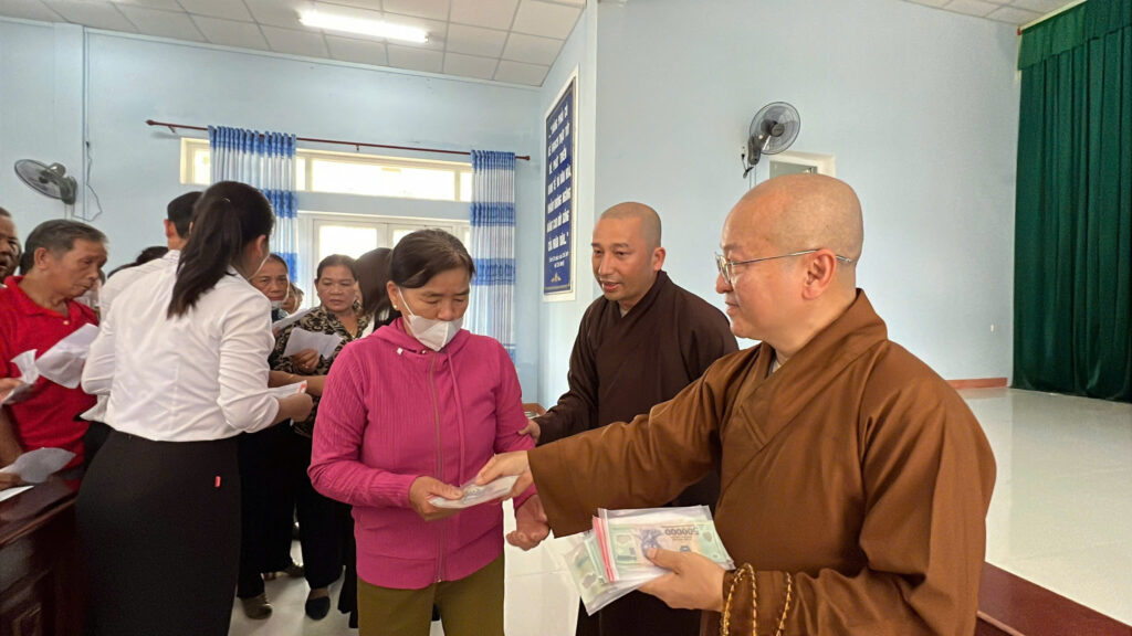 Đại diện đoàn, Thượng tọa Trụ trì Chùa Giác Ngộ, đã gửi gắm những lời động viên sâu sắc đến bà con nhân dân.