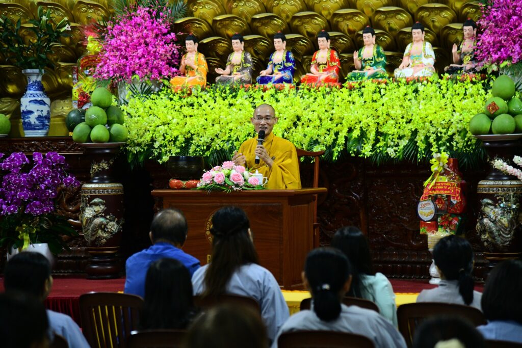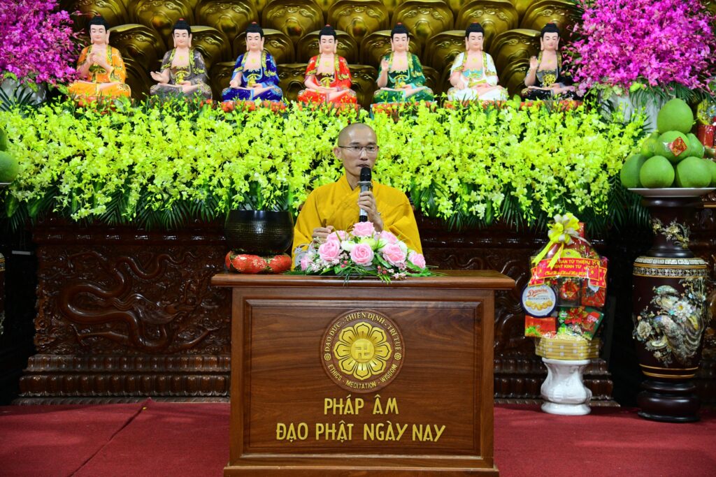 Mở đầu buổi pháp, Thượng tọa chia sẻ quan điểm về tinh thần tu học trong đời sống hiện đại, đặc biệt liên hệ đến phong tục ngày Tết. Theo Thượng tọa, người học Phật cần giữ vững tinh thần trung đạo, không nên vận dụng giáo lý một cách cực đoan hay máy móc để phủ nhận các giá trị văn hóa truyền thống. Việc vui xuân, sum họp gia đình là nhu cầu chính đáng. Điều quan trọng không phải là từ bỏ Tết, mà là sống trong ngày Tết với sự chừng mực, đạo đức và tỉnh thức.