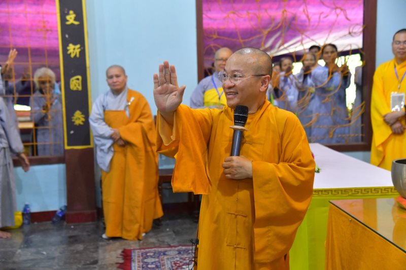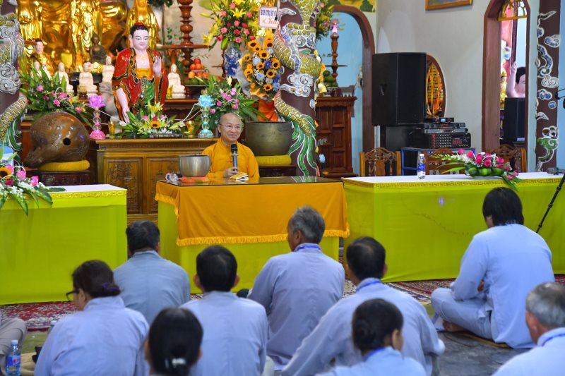 Trước khi kết thúc buổi giảng, Thượng tọa giảng sư đã dành thời gian hướng dẫn quý Phật tử hiện diện một số động tác rèn luyện sức khỏe thể chất. Khỏe mạnh về thể chất – mẫn tiệp về tinh thần sẽ tạo điều kiện thuận lợi để trải nghiệm hạnh phúc, an vui trong đời sống hiện tại.