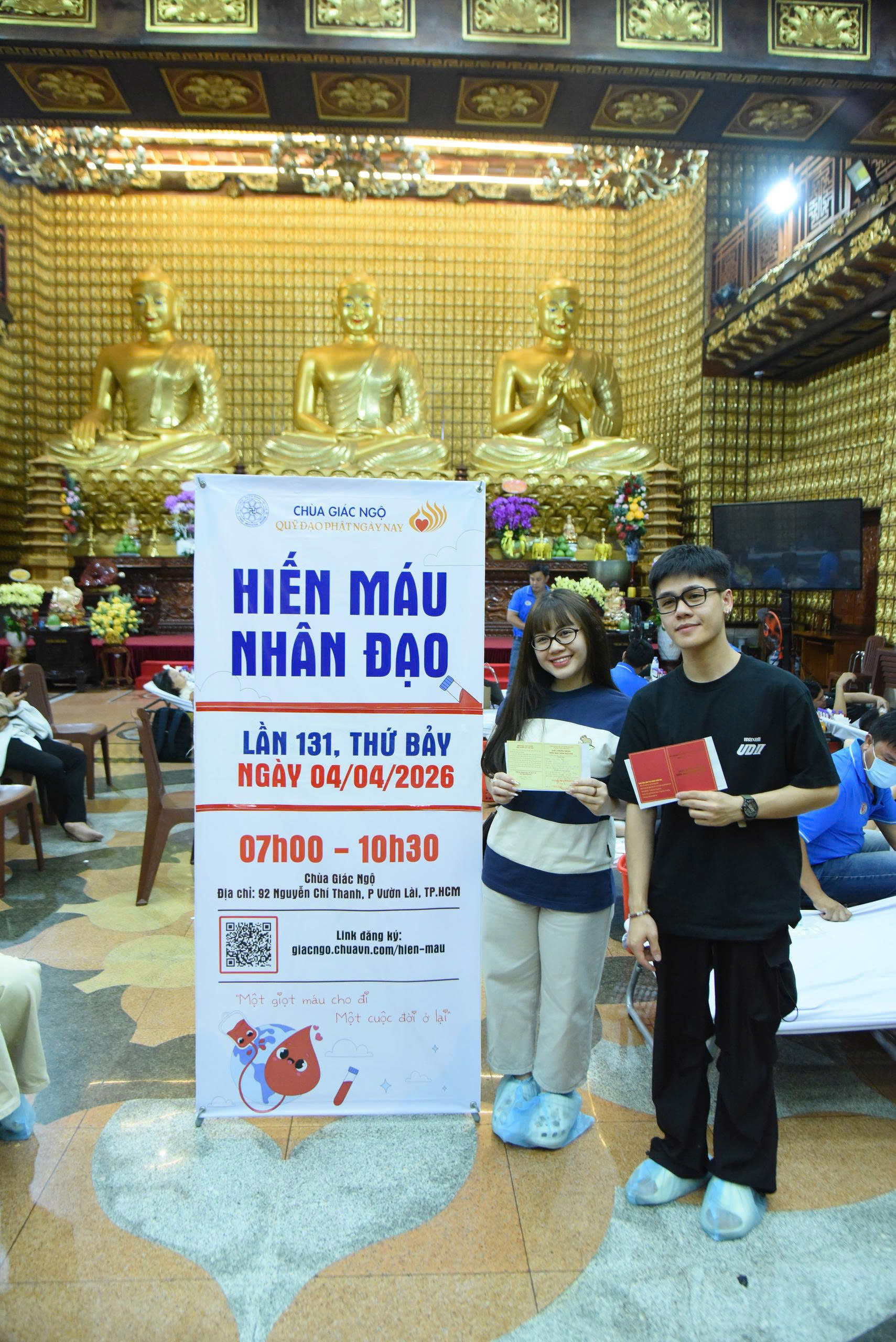 Chia sẻ tại buổi hiến máu, bạn Trâm Anh (sinh viên tại TP.HCM) xúc động: “Đến chùa hiến máu vào cuối tuần giúp mình cảm thấy lòng nhẹ nhàng và an lạc hơn. Mình hiểu rằng giọt máu của mình có thể giúp một ai đó giành lại sự sống, đó chính là niềm hạnh phúc lớn nhất.