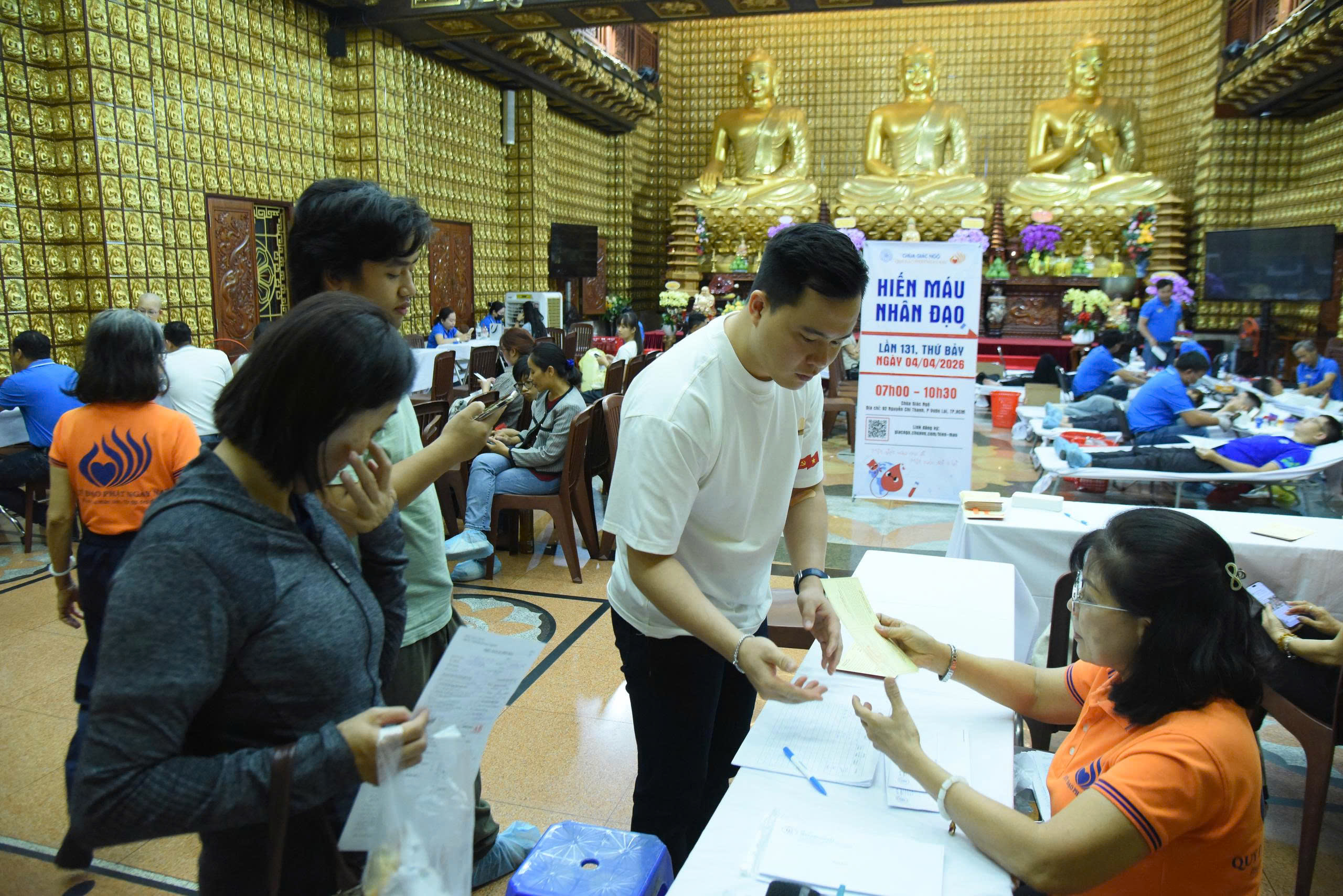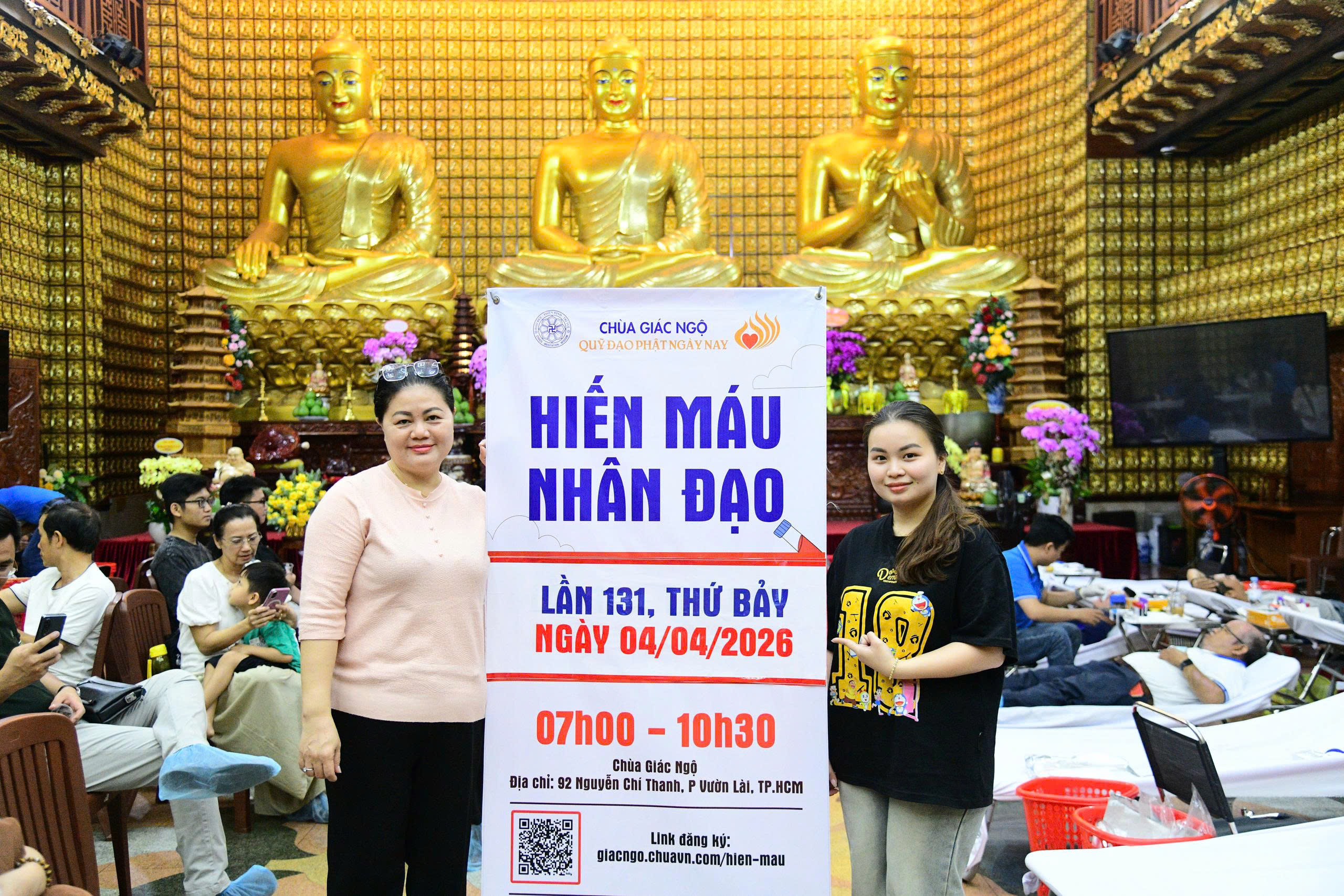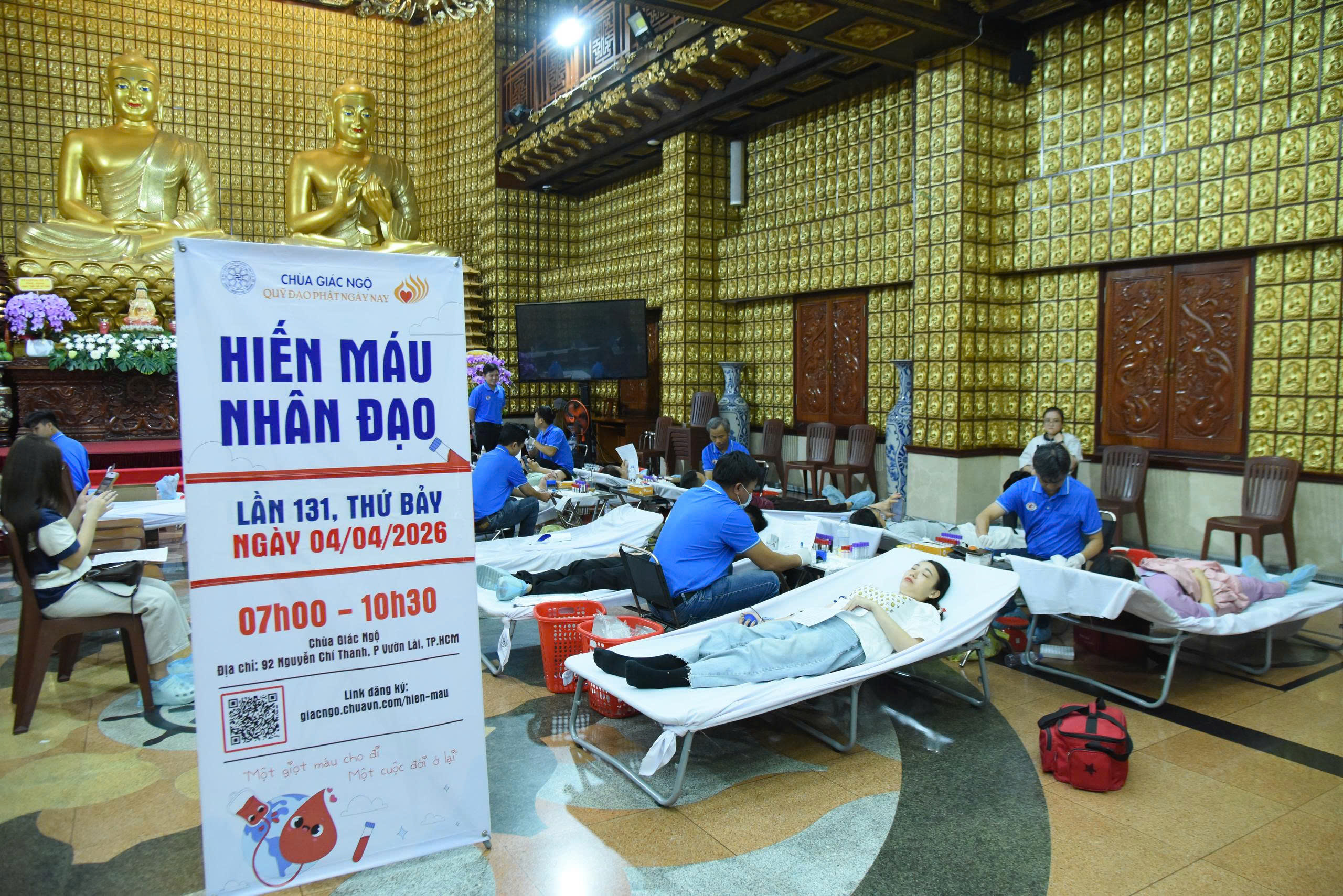 Sáng nay, ngày 04/4/2026 (nhằm ngày 17/02 năm Bính Ngọ), trong không gian thanh tịnh của chùa Giác Ngộ (P. Vườn Lài, TP.HCM), gần 200 Tăng Ni và Phật tử trẻ đã cùng nhau thực hiện nghĩa cử cao đẹp qua chương trình Hiến máu nhân đạo. Đây là hoạt động định kỳ mang thông điệp “Một giọt máu cho đi, một cuộc đời ở lại” nhằm hỗ trợ nguồn máu cấp cứu tại các bệnh viện.