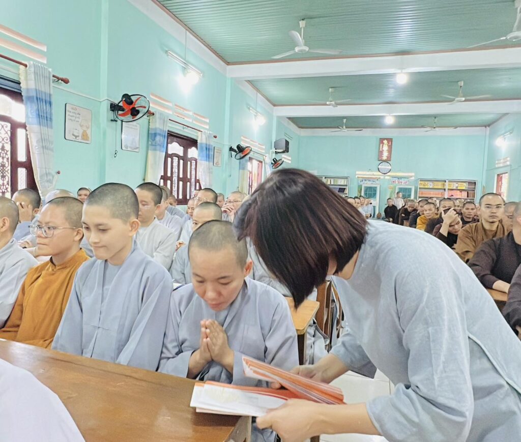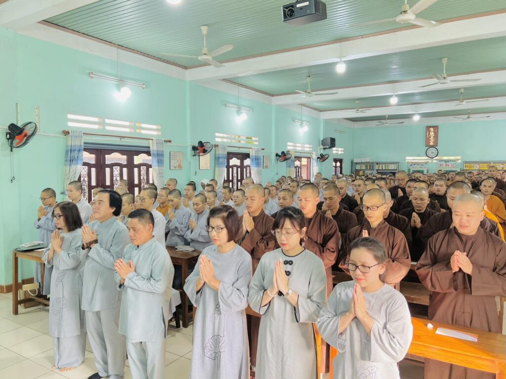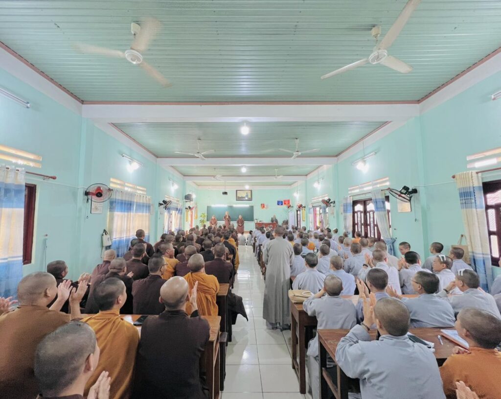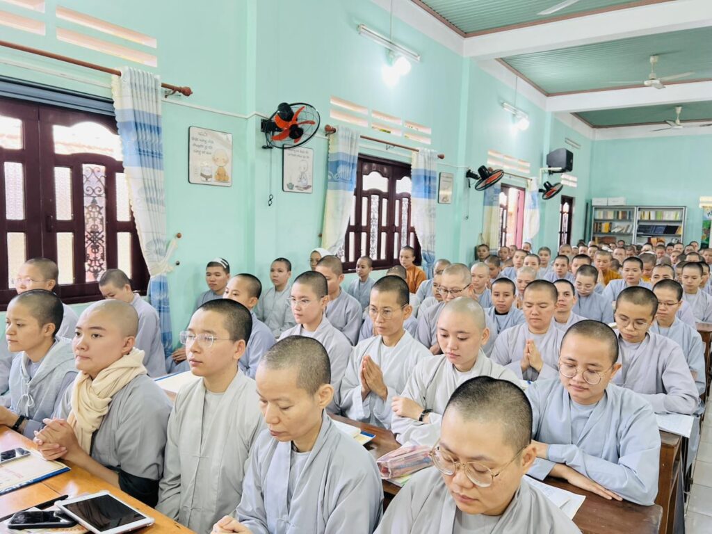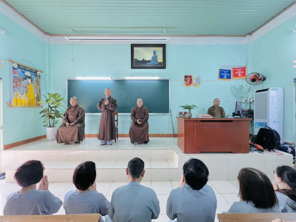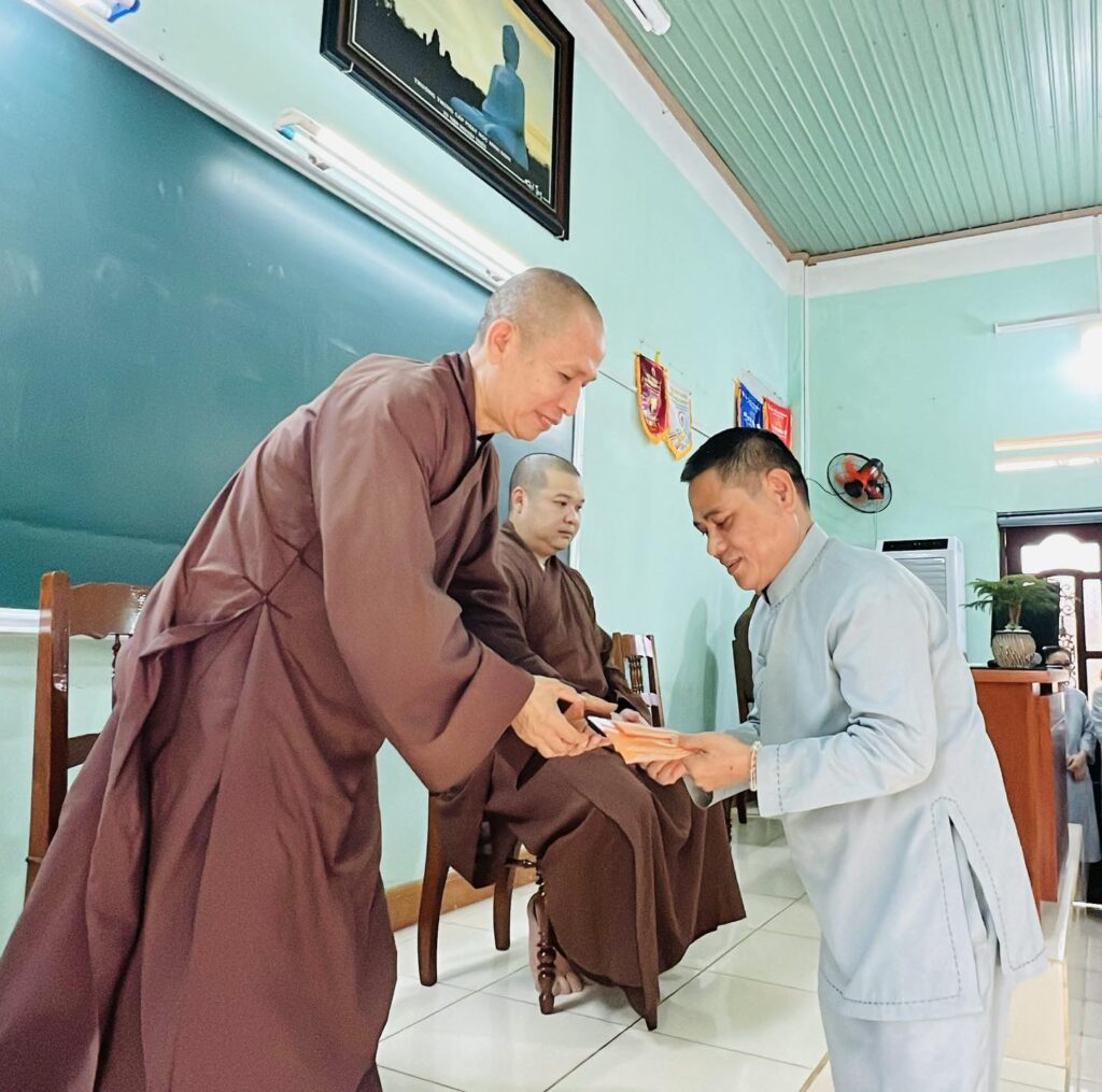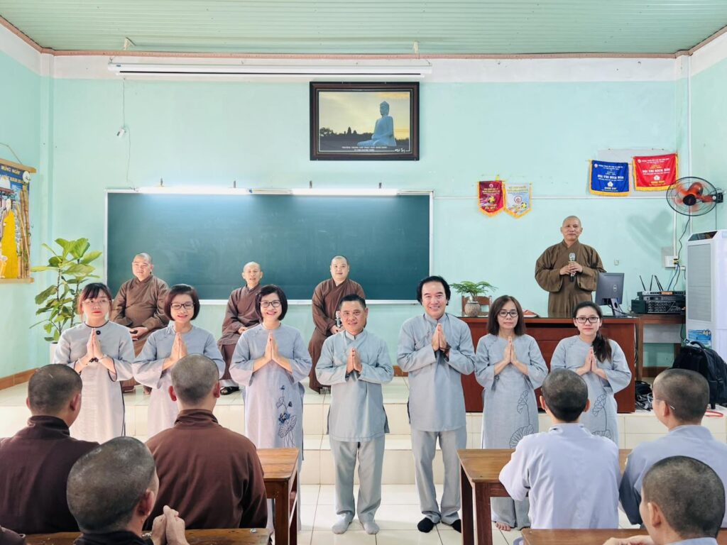 Chia sẻ với những khó khăn của đời sống Tăng, Ni đang cộng trú tu học tại bổn trường, đại diện đoàn, Phật tử Ngộ Nguyên Phúc mong rằng tập thể Tăng, Ni sinh cố gắng nỗ lực vượt qua khó khăn trước mắt, tu học tinh chuyên, báo đền ơn Thầy, Tổ.