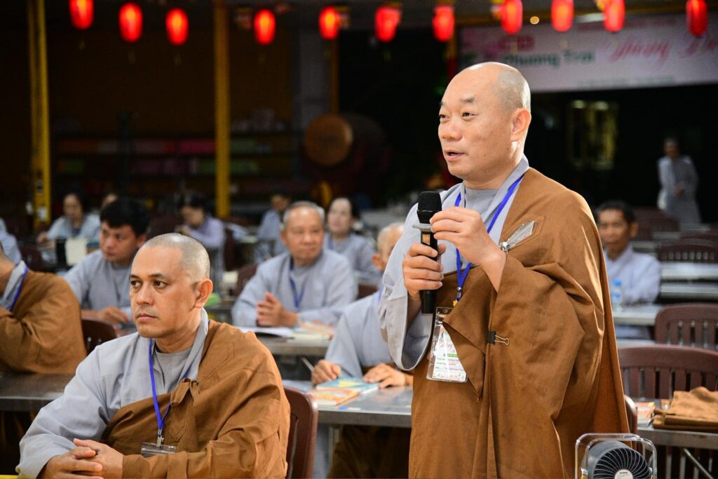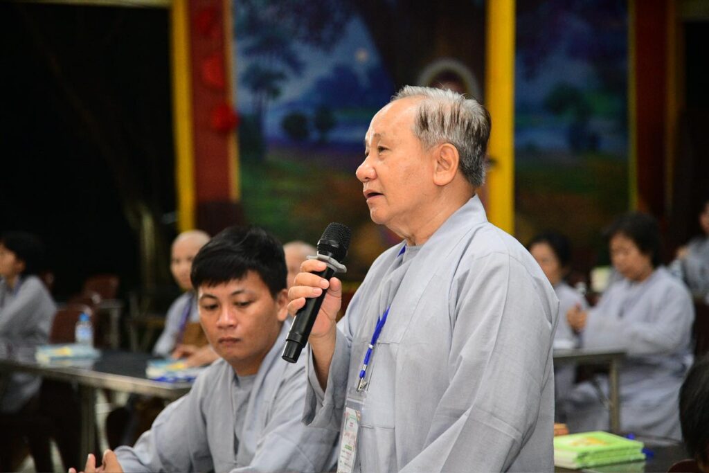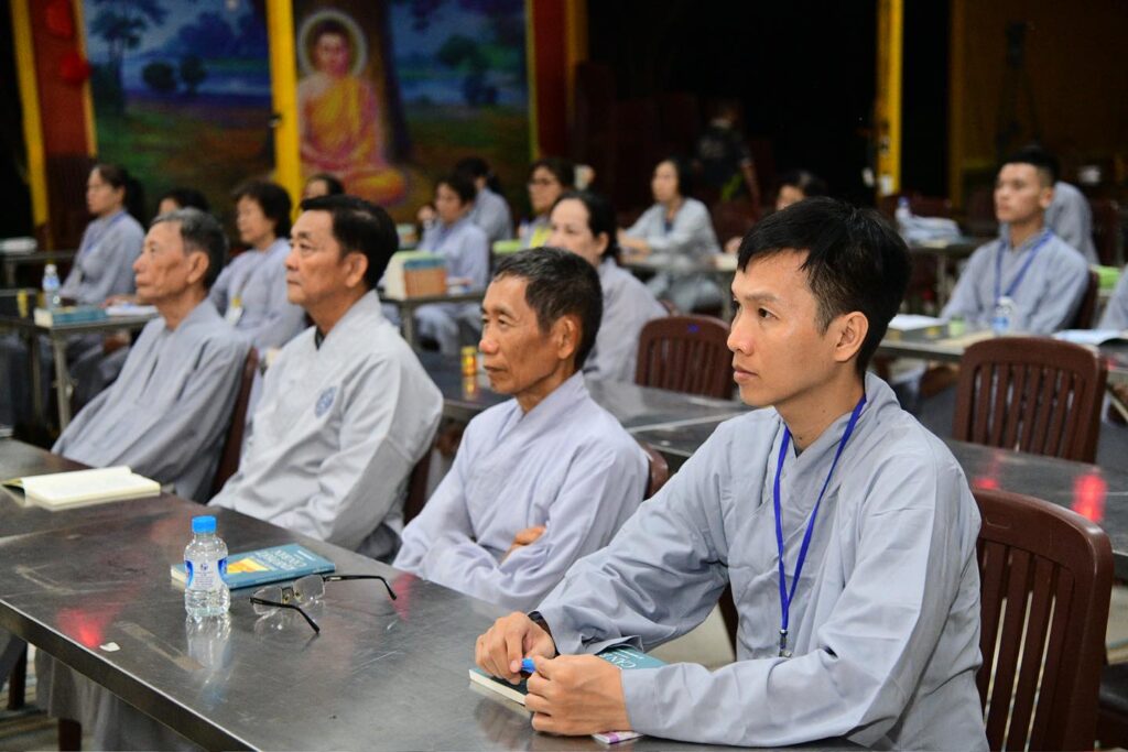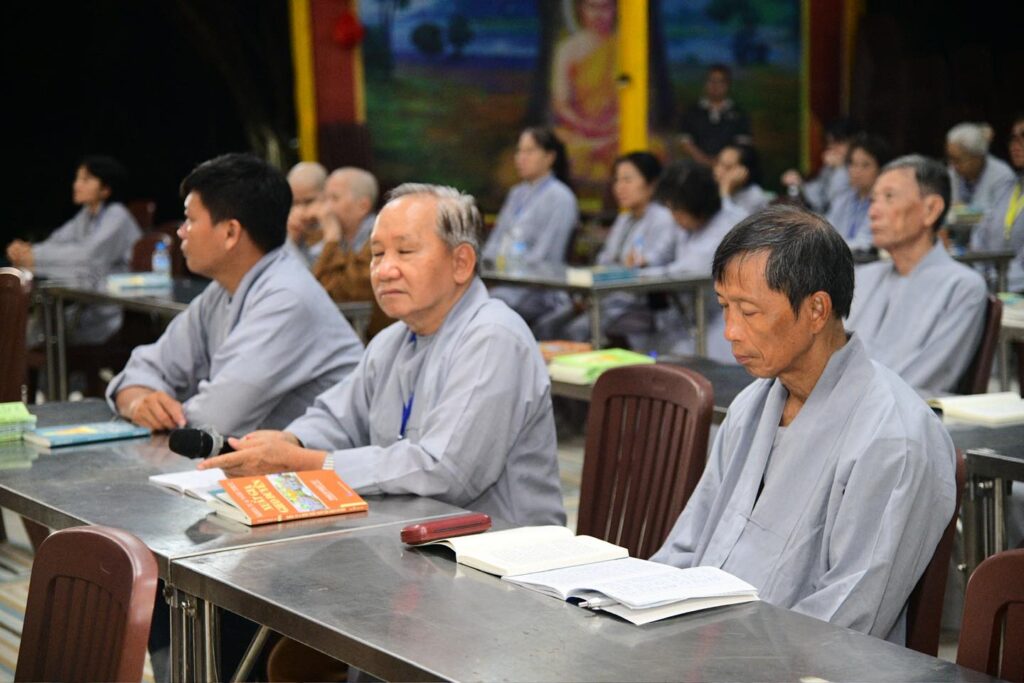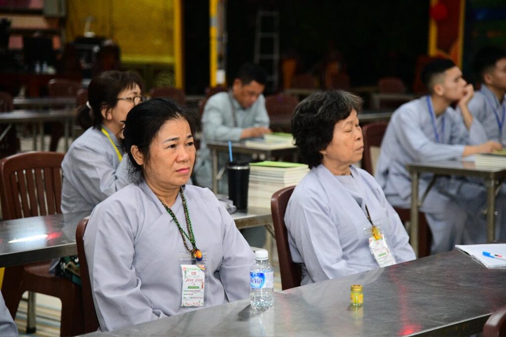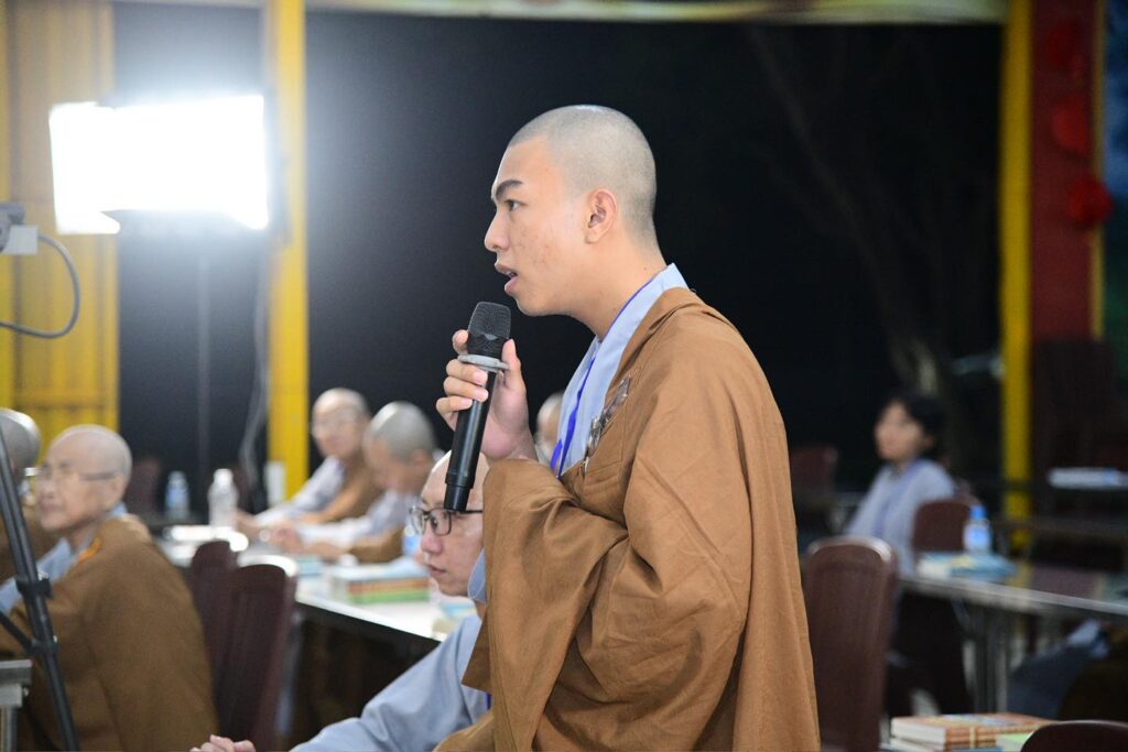 Không khí buổi vấn đáp diễn ra trong sự trang nghiêm nhưng cũng đầy sinh động, khi các câu hỏi được chia sẻ chân thành và nhận lại những lời giải đáp sâu sắc. Qua đó, hành giả không chỉ được mở rộng hiểu biết về Phật pháp mà còn củng cố niềm tin trên con đường tu học.