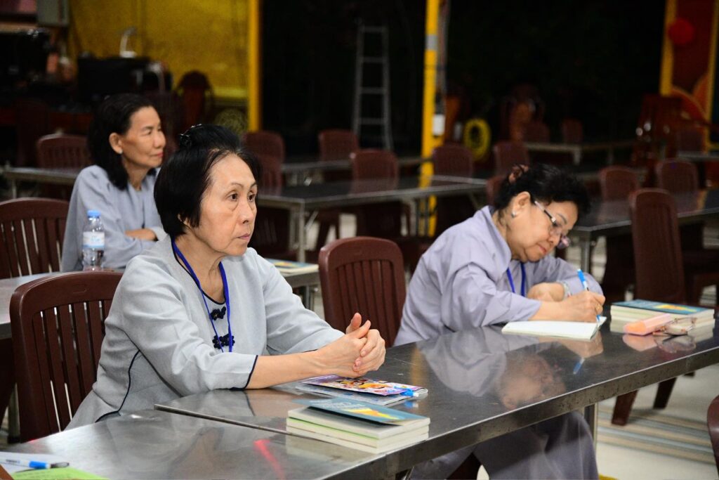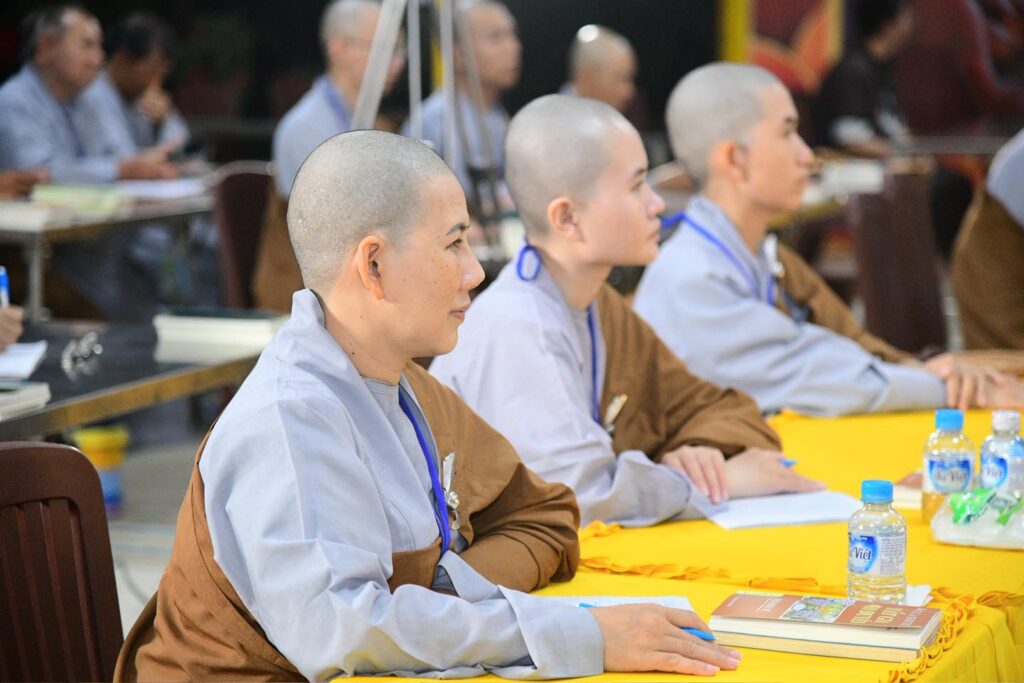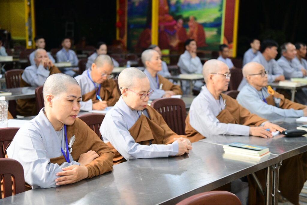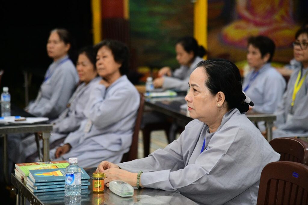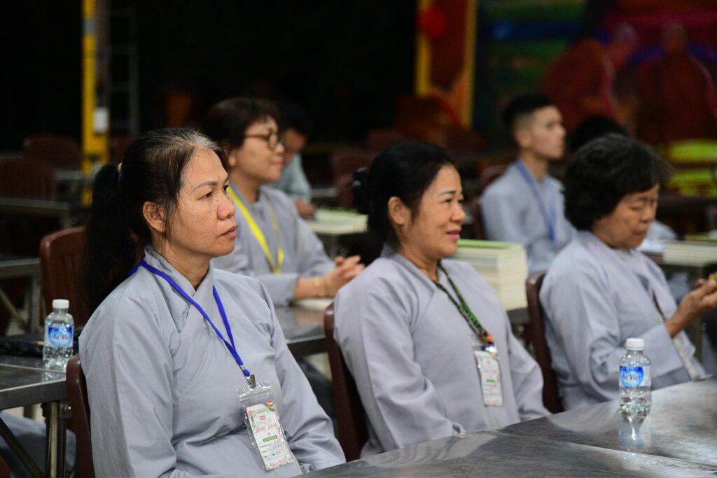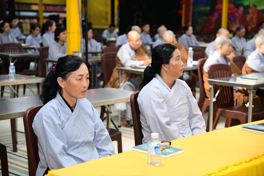 Không khí buổi vấn đáp diễn ra trong sự trang nghiêm nhưng cũng đầy sinh động, khi các câu hỏi được chia sẻ chân thành và nhận lại những lời giải đáp sâu sắc. Qua đó, hành giả không chỉ được mở rộng hiểu biết về Phật pháp mà còn củng cố niềm tin trên con đường tu học.