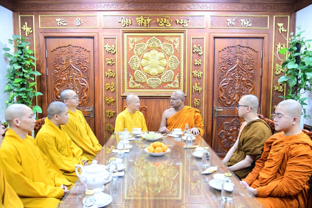 Sau đó, Thượng tọa đã có buổi gặp gỡ thân mật cùng Thượng tọa Thích Nhật Từ – Trụ trì Chùa Giác Ngộ và Tăng đoàn tại phòng khách. Trong không khí đạo tình, hai bên đã chia sẻ về các hoạt động Phật sự, đời sống tu học và định hướng hoằng pháp trong bối cảnh xã hội hiện đại, góp phần tăng cường sự hiểu biết và hợp tác giữa Phật giáo Việt Nam và Ấn Độ.