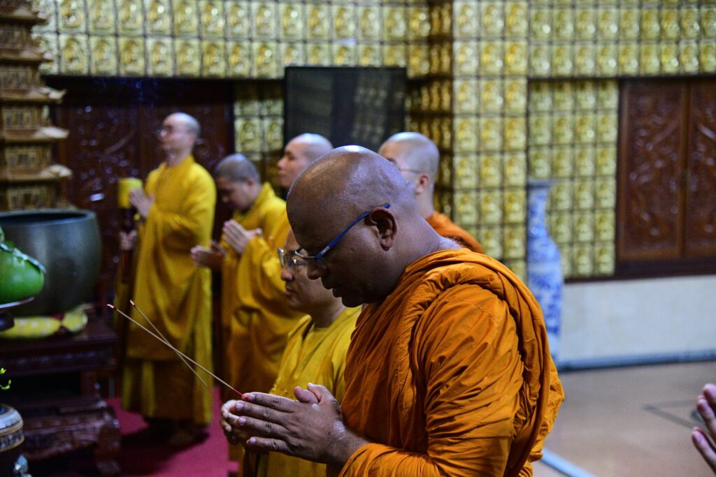 Tại chánh điện, trước tôn tượng Đức Phật trang nghiêm, Thượng tọa Deenanand đã thành kính dâng hương lễ Phật, đồng thời thỉnh ba tiếng đại hồng chung, nhất tâm cầu nguyện hòa bình thế giới, quốc thái dân an, chúng sinh an lạc. Nghi thức tuy giản dị nhưng lắng đọng chiều sâu tâm linh, thể hiện sự kết nối thiêng liêng giữa những người con Phật từ hai truyền thống văn hóa khác nhau.