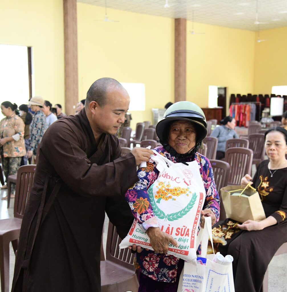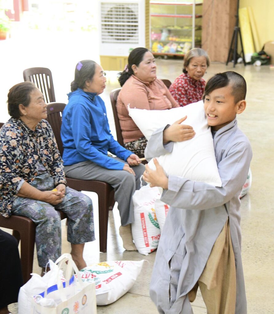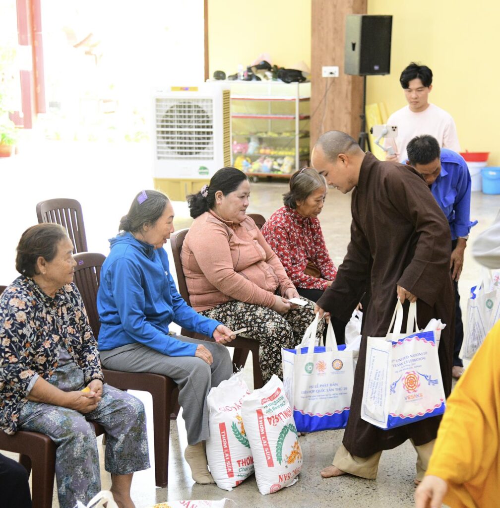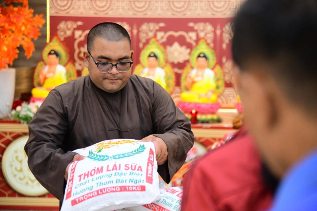 Tham dự buổi trao quà, về phía chùa Giác Ngộ có TT. Thích Nhật Từ – Trụ trì chùa Giác Ngộ; Chư tôn đức Tăng đoàn chùa Giác Ngộ (X. Đất Đỏ, TP.HCM), đại diện quý mạnh thường quân gia đình Phật tử Thiện Minh – Diệu Tuyền, Phật tử Minh Hiếu.